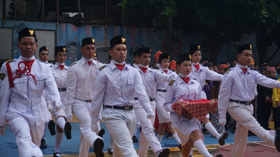 Lapangan Sekolah Tarsisius II dihiasi oleh warna-warni busana tradisional. Peserta dari SD hingga SMA, lengkap dengan guru dan karyawan, menampilkan kekayaan budaya dari Sabang hingga Merauke. Pemandangan ini berfungsi sebagai pengingat visual yang kuat bahwa meski berbeda suku, agama, dan adat, mereka adalah satu kesatuan, Indonesia.
