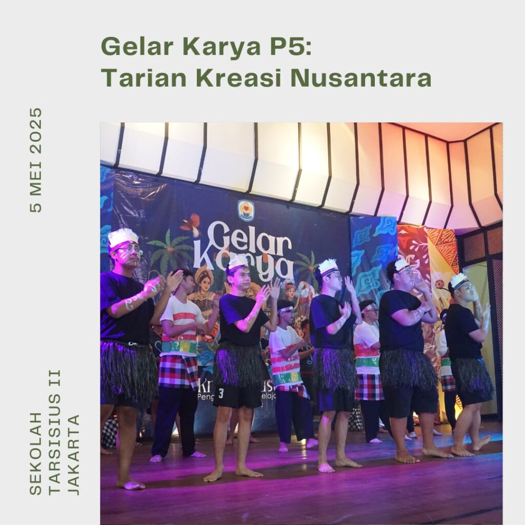 Jakarta, 5 Mei 2025 – Dalam semangat memperkuat karakter dan kecintaan terhadap budaya bangsa, SMA Tarsisius II Jakarta menyelenggarakan kegiatan Projek Penguatan Profil Pelajar Pancasila (P5) bertema “Tarian Kreasi Nusantara” pada Senin, 5 Mei 2025. Acara berlangsung meriah di Aula SMA Tarsisius II, dimulai pukul 07.00 hingga 11.00 WIB.