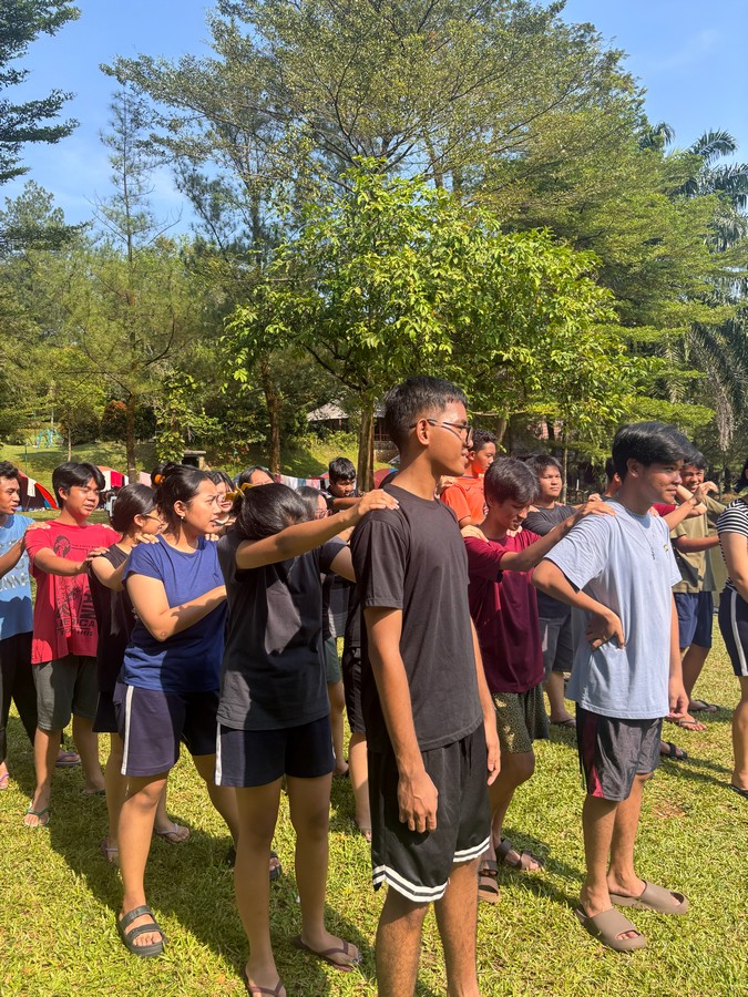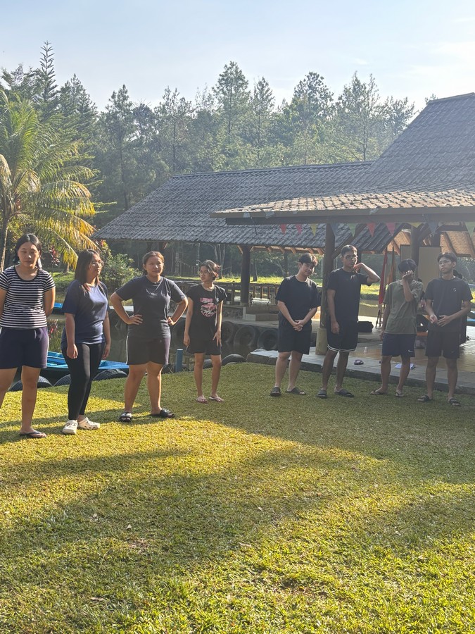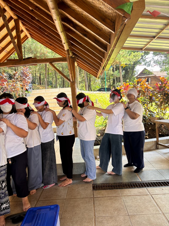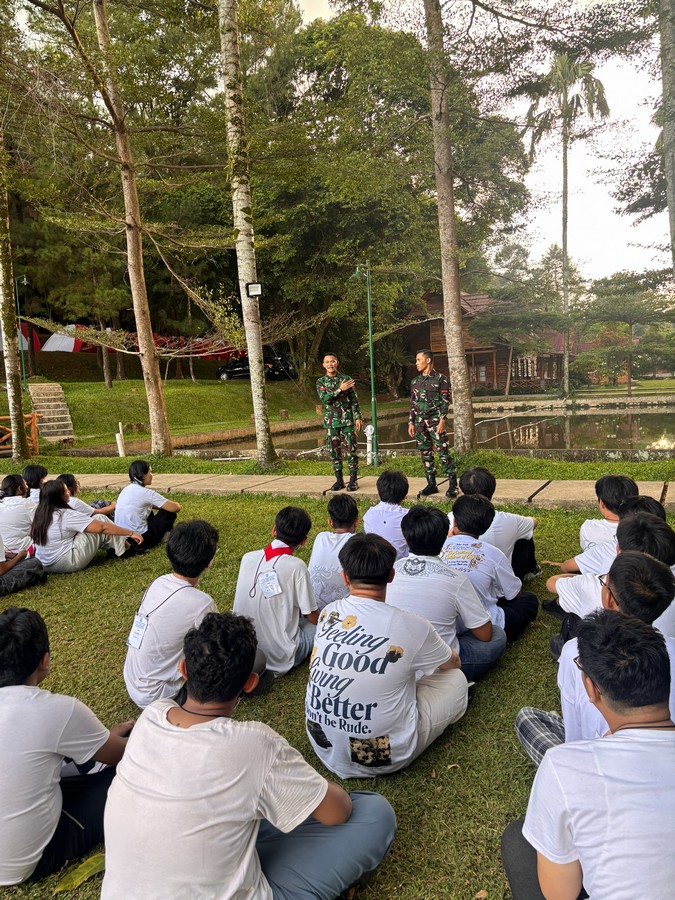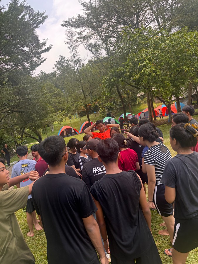 Peserta terlibat dalam permainan kelompok yang membutuhkan strategi cepat, koordinasi fisik, dan kepercayaan antar anggota. Suasana riuh dan semangat membara tampak jelas saat mereka berjuang menyelesaikan misi bersama, memperkuat ikatan sebagai satu tim.