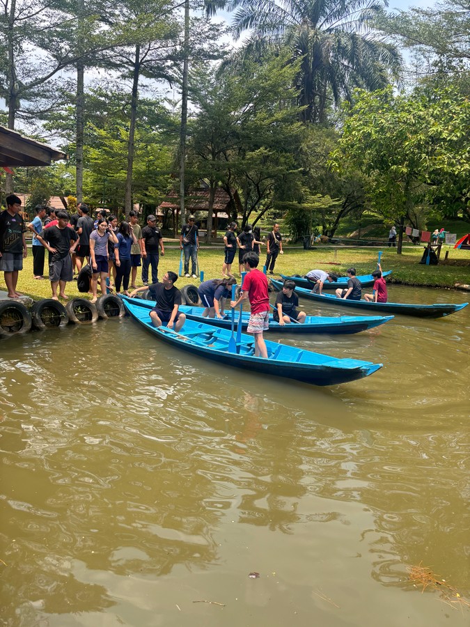 Salah satu momen paling menarik adalah sesi aktivitas air menggunakan perahu. Di sini, peserta harus berjuang mendayung dan menyeimbangkan perahu. Ini menjadi metafora sempurna untuk kerjasama di bawah tekanan, di mana setiap anggota harus menjalankan perannya dengan disiplin untuk mencapai tujuan bersama. Pengalaman ini melatih mereka bahwa kesuksesan organisasi sangat bergantung pada kontribusi setiap individu.